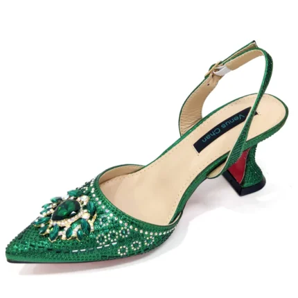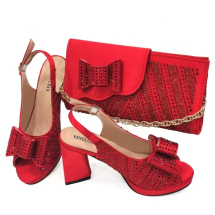 طقم شنطة وحذاء لامع بأحجار الكريستال