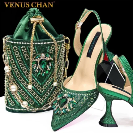 مجموعة حذاء وحقيبة مرصعة بالأحجار