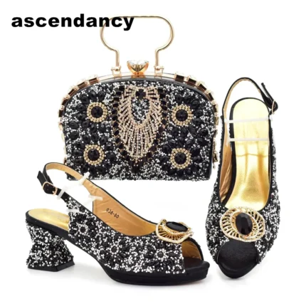 طقم حذاء وحقيبة راقٍ مرصع بأحجار الكريستال