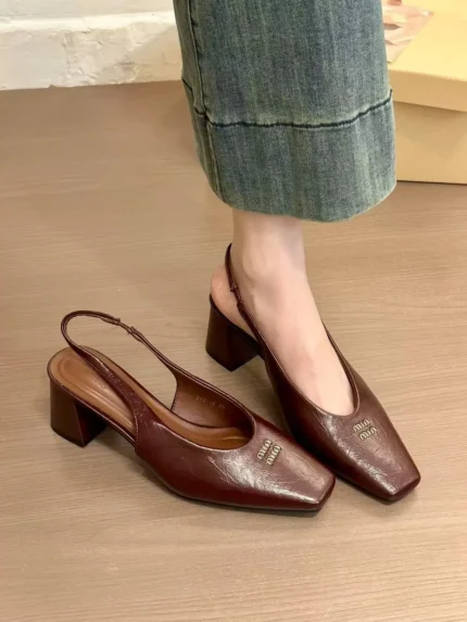 صنادل نسائية فاخرة أنيقة ومتعددة الاستخدامات بتصميم صيفي جديد من الجلد اللامع أحذية ماري جين بكعب عالٍ ضحل