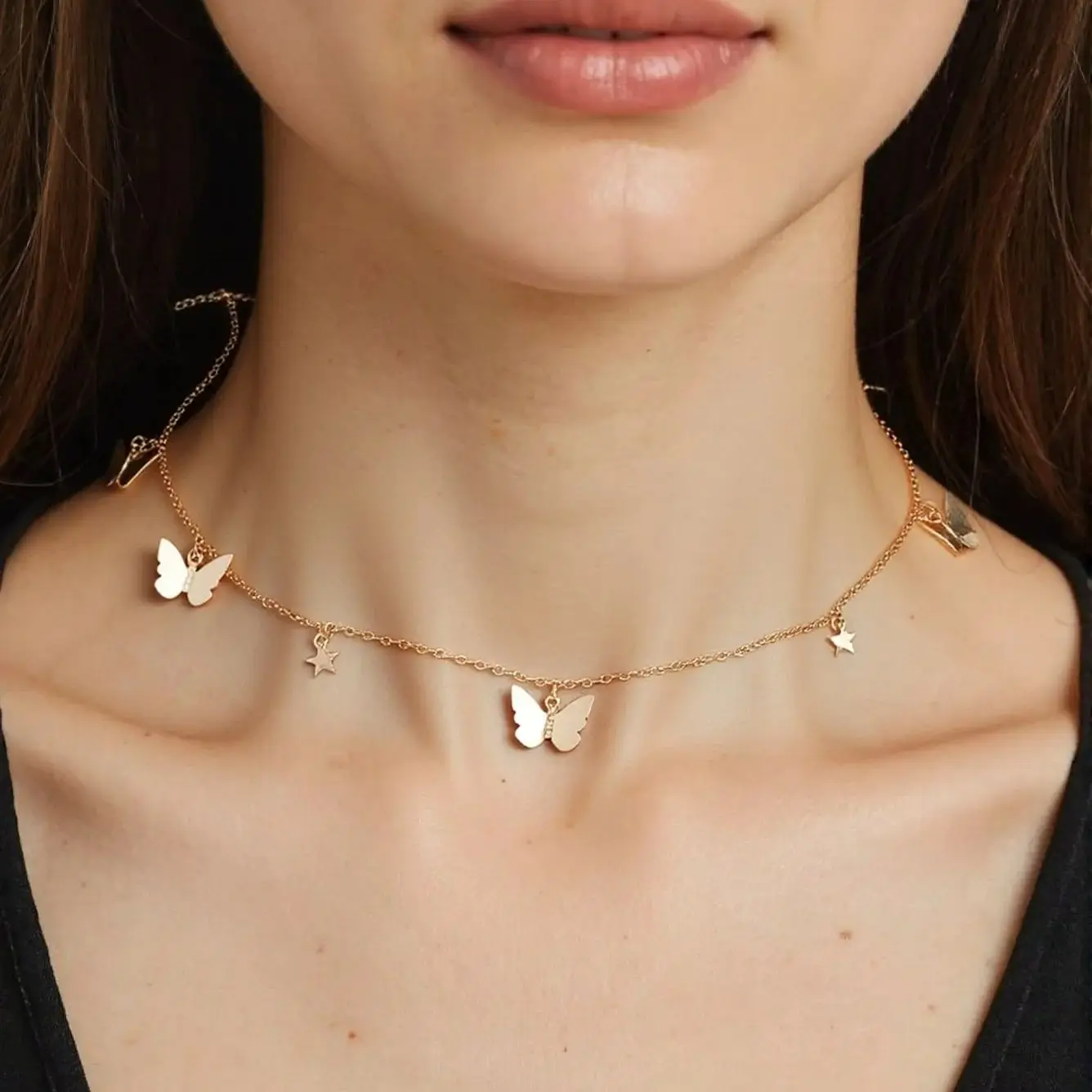 أضيفي لمسة أنوثة وسحر إلى إطلالتك اليومية أو الرسمية مع سلسال فراشة الرقيق والمميز. تصميم أنثوي جذاب بنقوش الفراشات والنجوم يبرز أناقتك بأسلوب عصري يليق بجمالك الطبيعي.