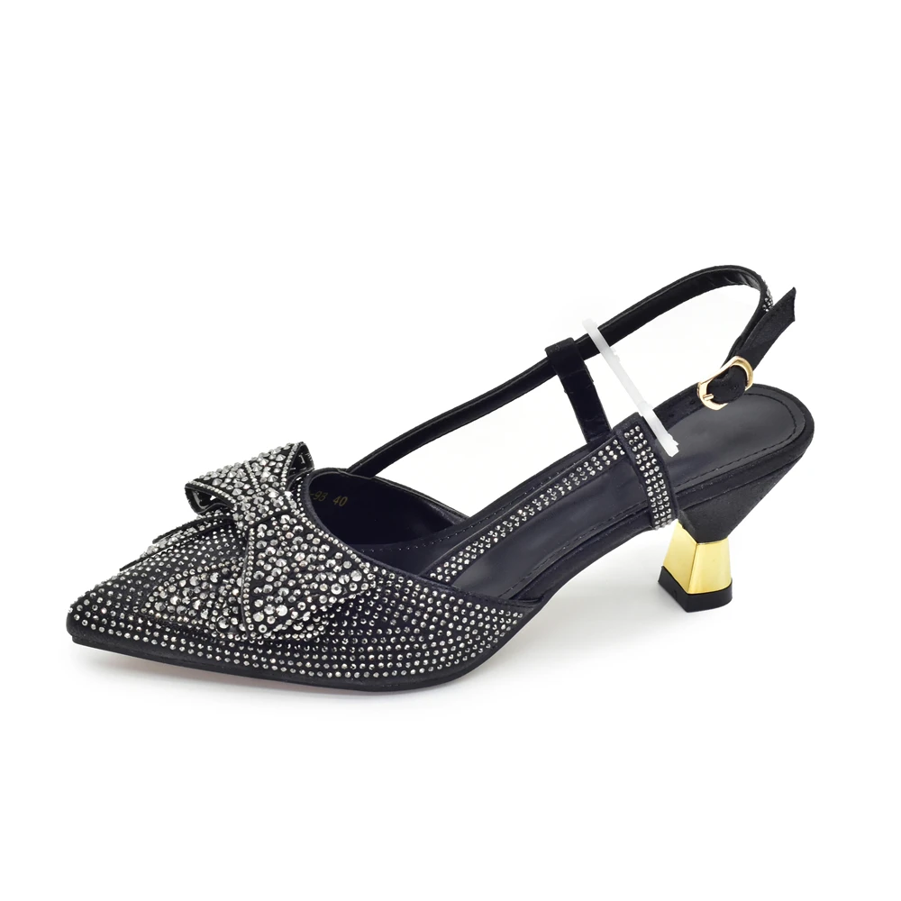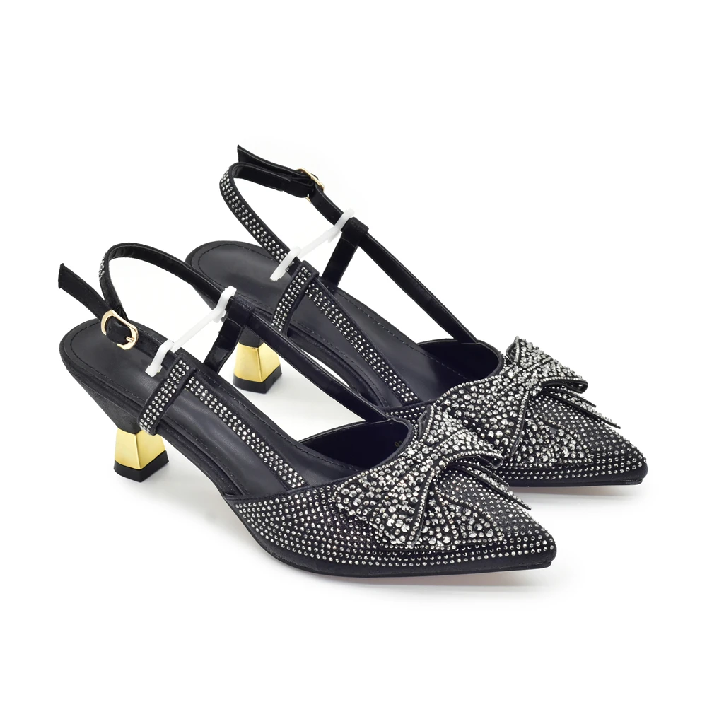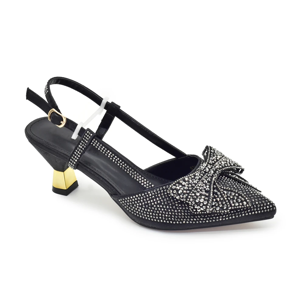 • الخامة العلوية (الحذاء): جلد صناعي عالي الجودة مرصّع بحبيبات الكريستال