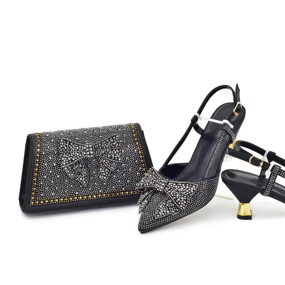 • اسم المنتج: مجموعة حذاء وحقيبة مرصعة بالأحجار