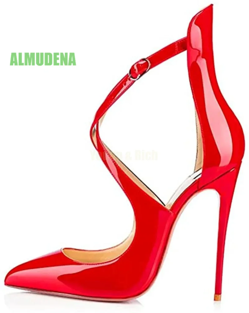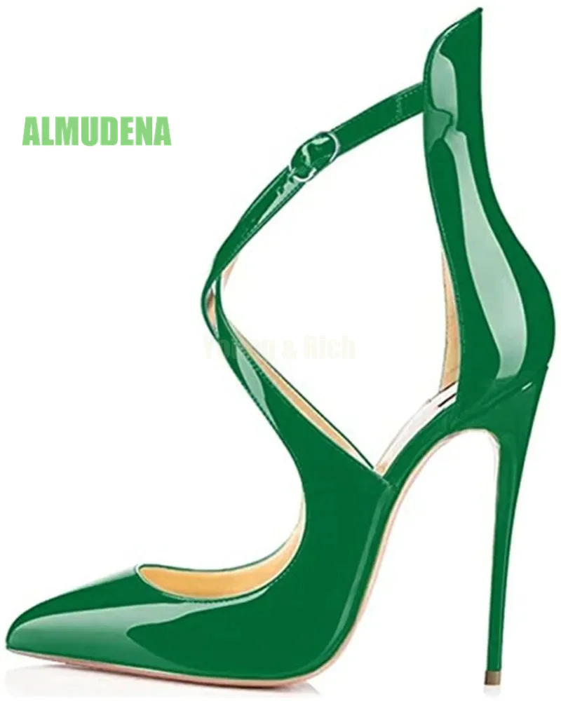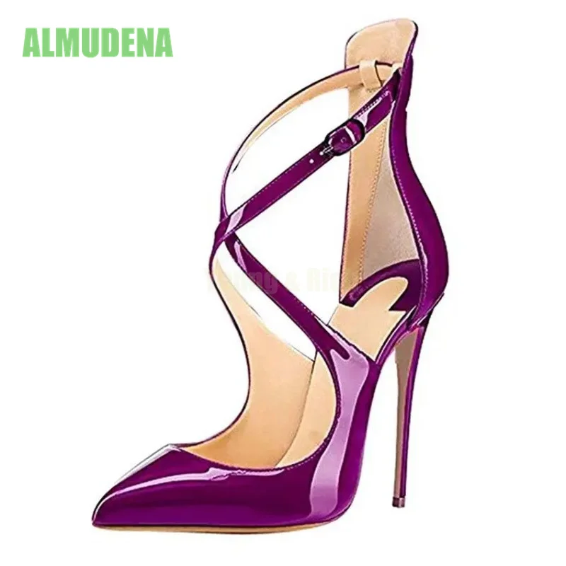 تميّزي بإطلالة جذابة وأنيقة في آنٍ واحد مع هيلز كعب رفيع ومقدمة مدببة، مصمم خصيصًا للمرأة العصرية التي تبحث عن التألق في السهرات والمناسبات. تصميمه الراقي بلون موحّد ولمعة جذابة، مع الحزام المتقاطع يضفي توازناً بين الأناقة والجرأة.